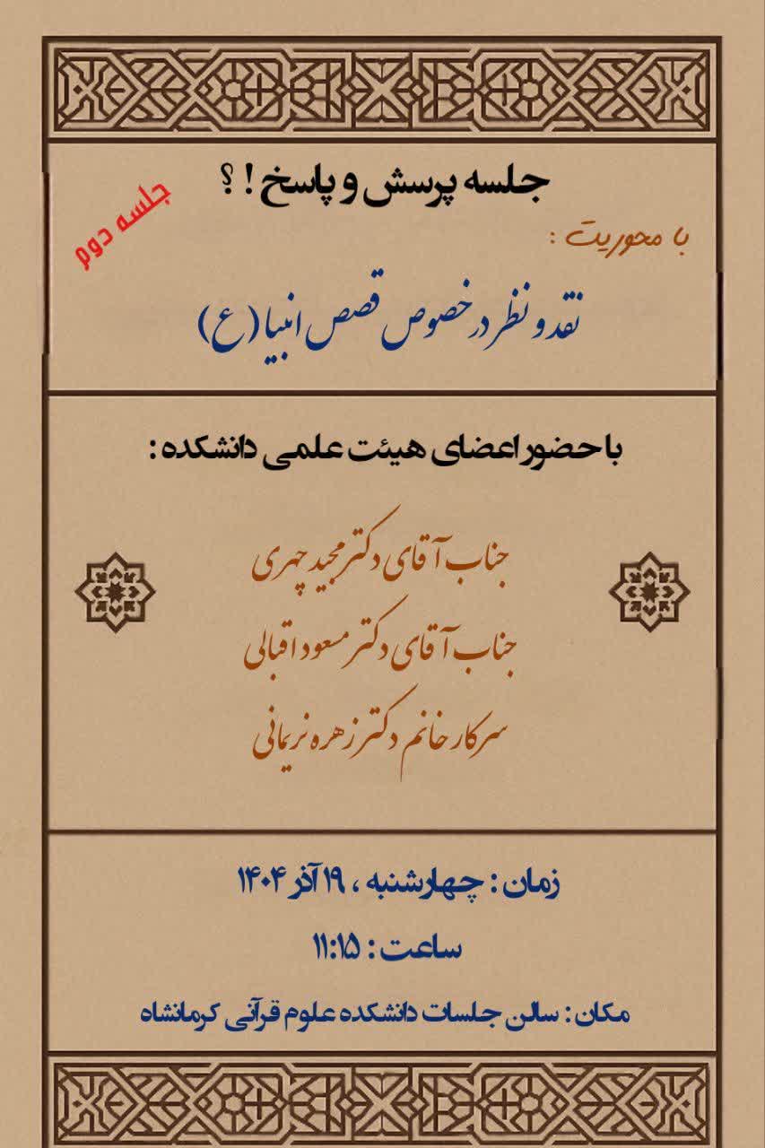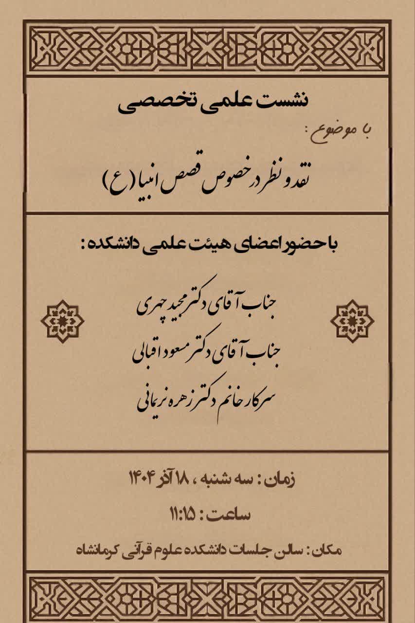نشست علمی پژوهشی با موضوع « نقد و نظر در خصوص قصص انبیاء ع» در دانشکده علوم قرآنی کرمانشاه برگزار گردید .