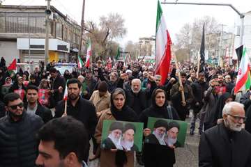 تجدید بیعت مردم ولایی کرمانشاه با رهبر انقلاب در راهپیمائی روز قدس