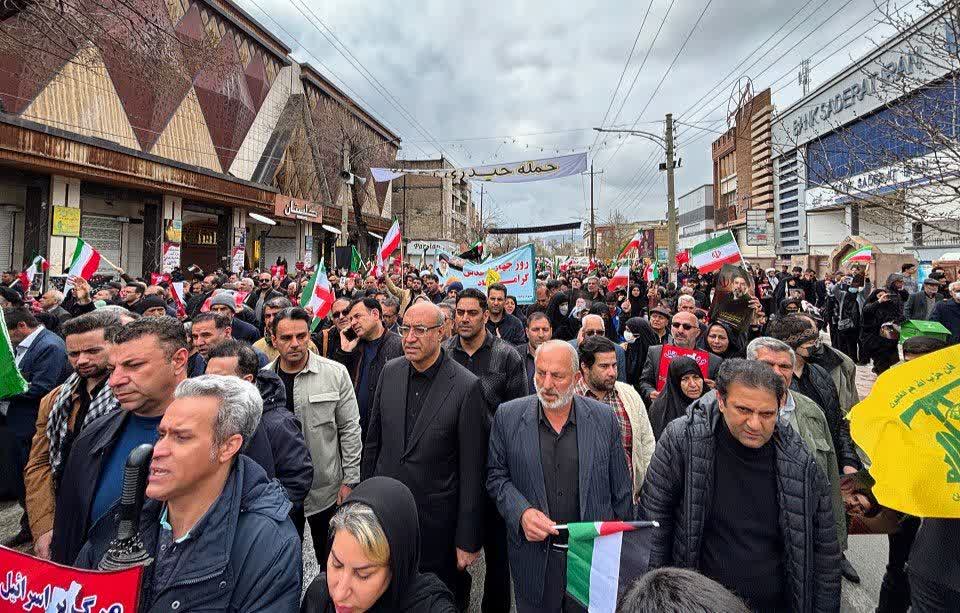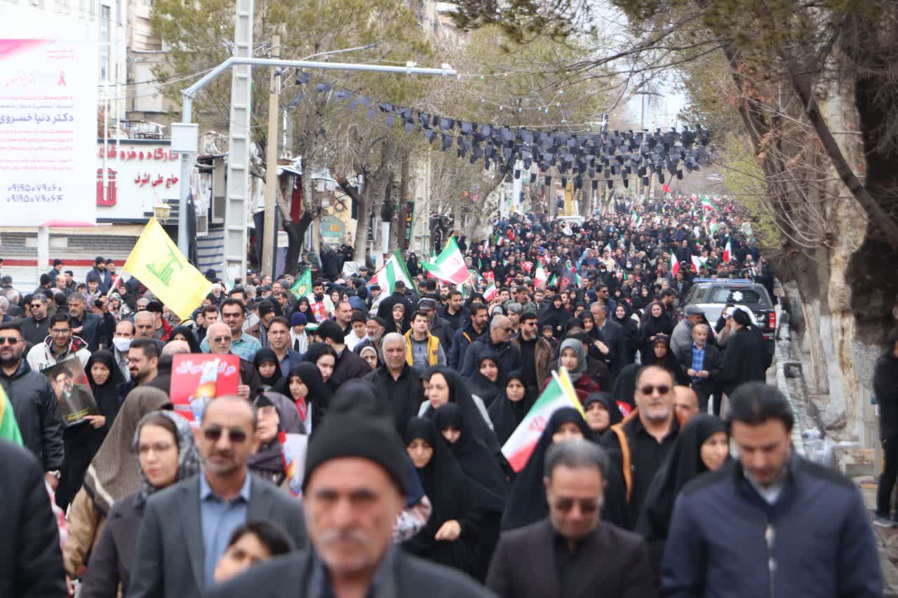 به گزارش ایحاء از کرمانشاه؛ راهپیمایی روز جهانی قدس در شهر کرمانشاه، در آخرین جمعه ماه مبارک رمضان با حضور صدها هزار نفر از اقشار مختلف مردم و روزه‌داران عزیز برگزار شد. حضور بی‌نظیر، حماسی و شجاعانه مردم فهیم استان در راهپیمایی یوم‌الله روز قدس، یادگار و ابتکار ماندگار حضرت امام خمینی(ره) برای نجات فلسطین مظلوم، جلوه‌ای تمام‌عیار از بصیرت، پایداری و ایمان راسخ ملت بزرگ ایران اسلامی است؛ آن هم در شرایطی که کشور عزیزمان تحت حمله وحشیانه نظامی دشمن صهیونیستی - آمریکایی قرار دارد.